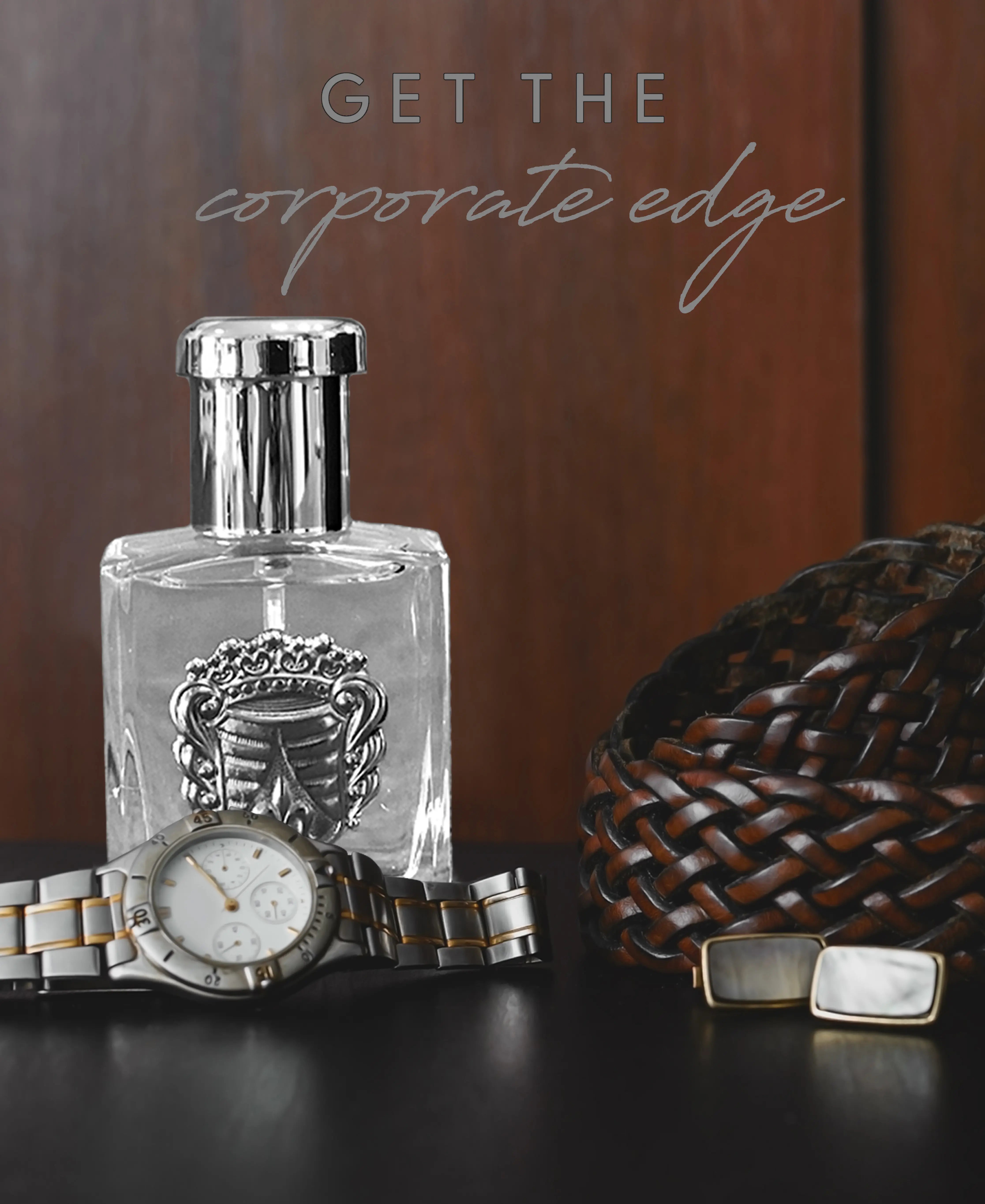 As it develops, a refined heart of light florals and smooth green accords emerges—balanced, professional, and quietly confident. This stage enhances approachability without compromising authority.
